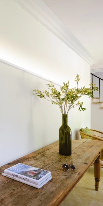 Orac Decor C396 Coving, This clean, modern profile from the Steps range can also be used to conceal LED lighting. The angled corners above and below provide additional subtle shadow lines. Designed by Orio Tonini.