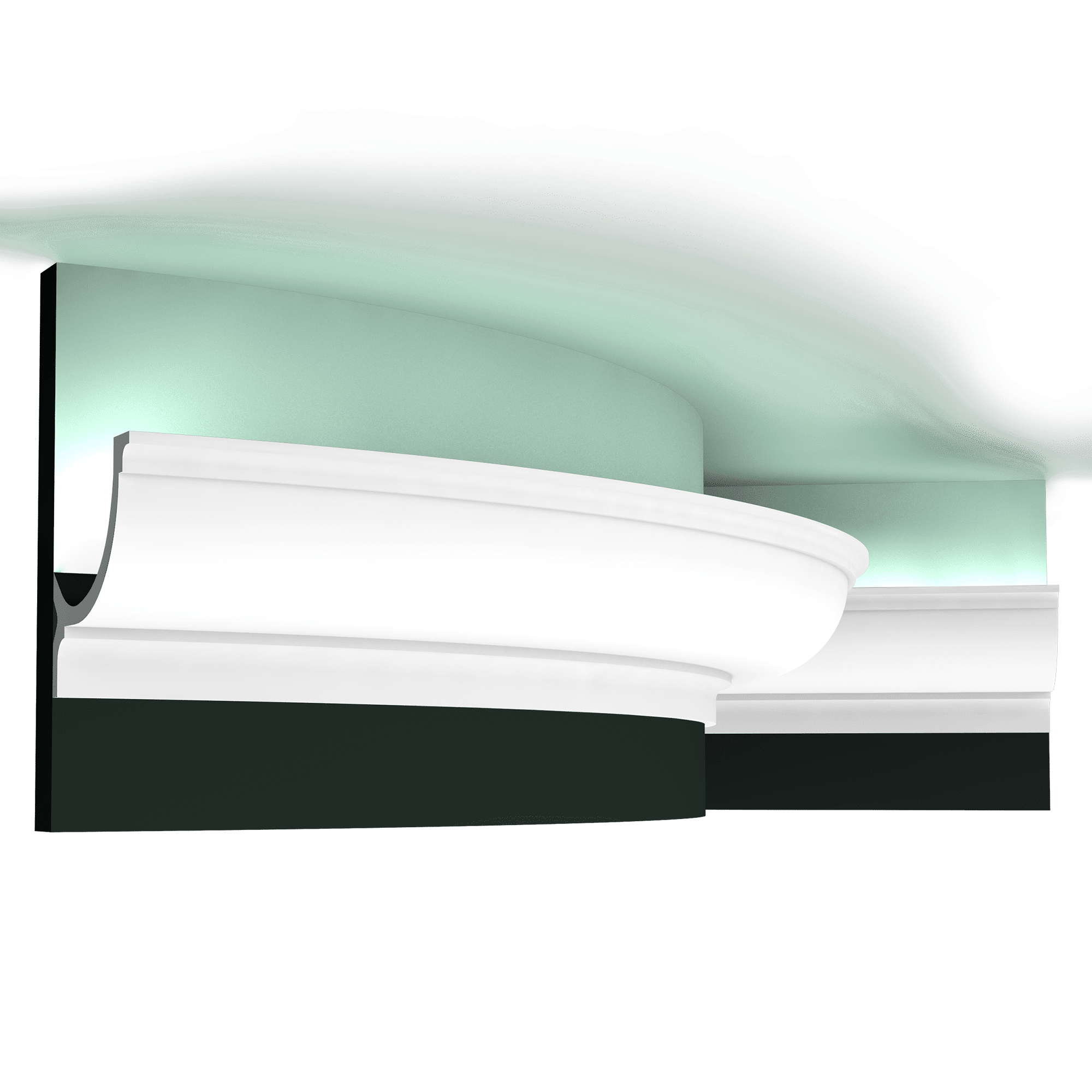 Orac Decor C902 Flex, Small uplighter lighting trough inspired from ovolo shape – use lighting systems for a beautiful creative warm glow on the ceiling. Lends depth and drama.
