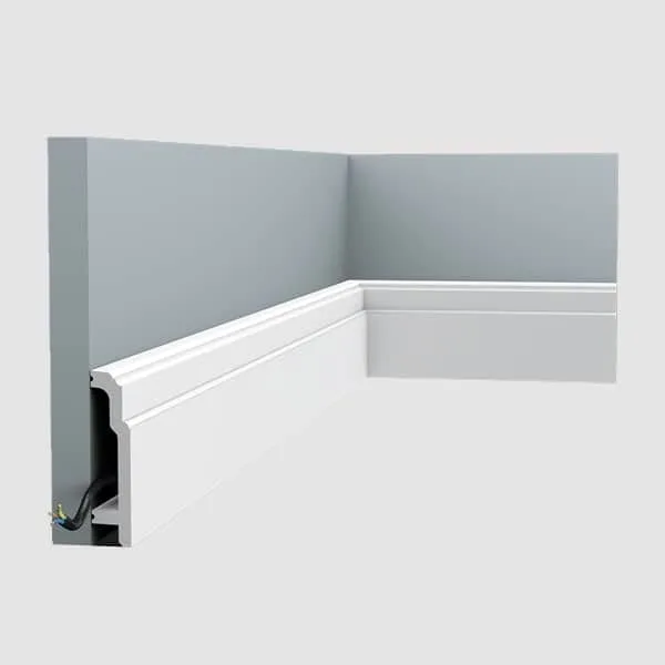 Our skirting boards are impact and water-resistant, already primed and easy to paint. Most feature chambers to conceal cables. The polymer material sets the highest standards for quality and durability.