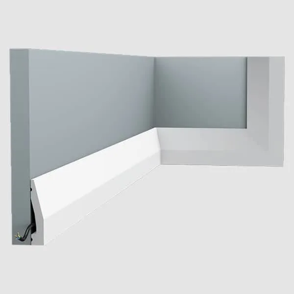 This simple skirting board from Orac Decor has a slight angle and fits any interior. This multifunctional moulding creates a seamless transition between walls and doors, windows and even ceilings.
