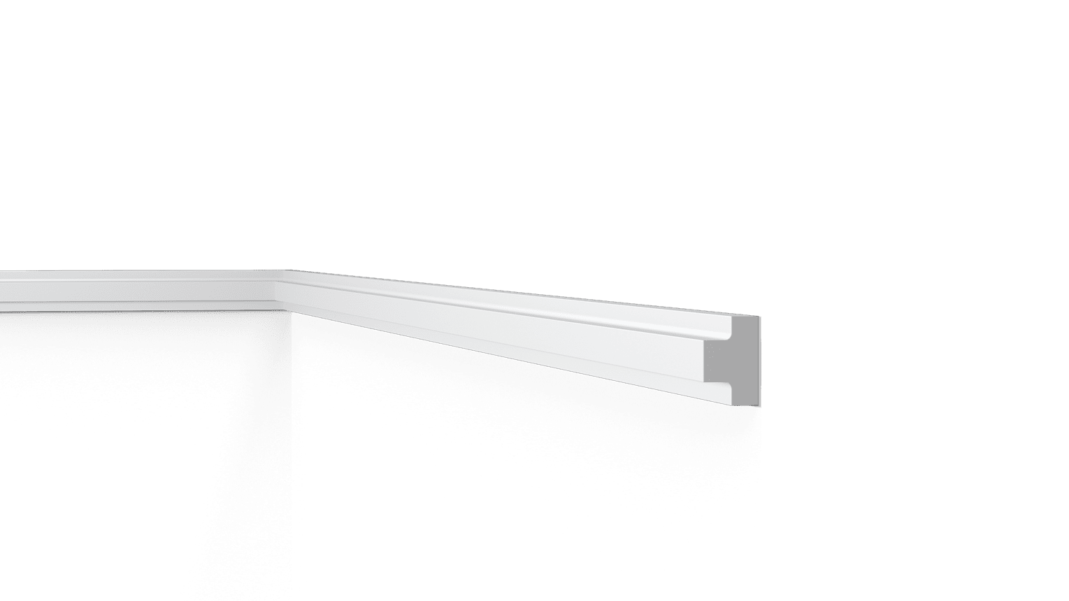 Combine creativity and clean-cut simplicity with the T40 coving. The cubic design lends itself to modern interiors, but the geometric shape is versatile. A shadow line underneath the coving adds an atmospheric effect. The mouldings can be installed in all directions to create unique wall patterns and feature pieces.