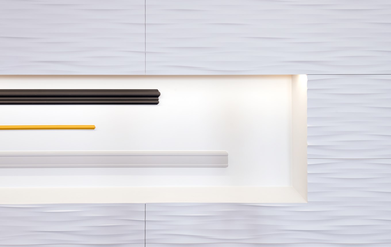 Enhance an interior with the modern WL5 WALLSTYL® chair rail. A linear design mimics the clean lines typically found in contemporary decors. Place the WL5 at different heights and angles to customise the appearance of a room.