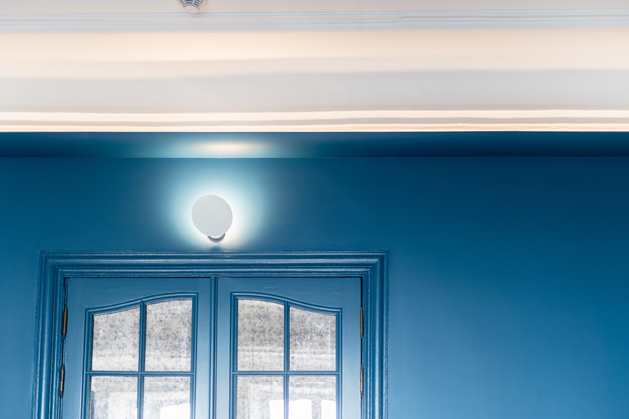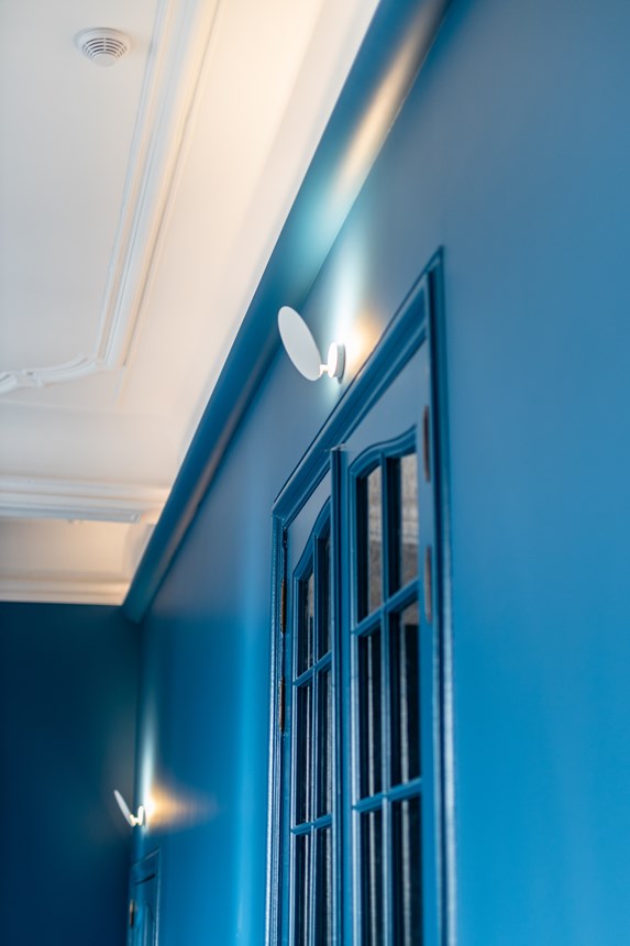 The cornice pieces arrive primed and ready for their final painting. At the back of the WT3 WALLSTYL® moulding is space for LED clips, designed to hold LED lighting sources. Depending on the positioning, there is also space behind the moulding to conceal wiring or unsightly cracks.